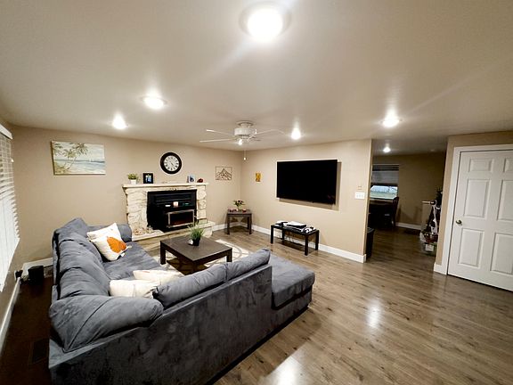 Top Unit Duplex. Enjoy a hot tub under the stars or barbecue out in the yard on this huge .47 acre lot with fenced backyard nestled in downtown Santaquin. Pump some iron in the home gym and you'll have plenty of storage, gardening space and garage parking. This home is located just 2 minutes from I-15, 2 minutes from Macey's and has just an 18 minute commute to downtown Provo. Enjoy the complimentary hottub and sunroom/weight room, basketball pad and stow your toys or Rv with ample RV pad and garage space. The huge fenced backyard would be perfect for that furry friend. This property includes: 3 Beds, 2 Bath, approx, 1500 sq feet. Top unit of Duplex. 2 Car oversized garage, sunroom/workout room, patio, hot tub, grilling area, 2 sheds, basketball court, extra parking, RV pad. Big front yard and huge fenced backyard on .47 acre lot. Newly renovated kitchen, bathrooms, new carpet and flooring throughout home. Rental to include washer, dryer and fridge, and use of weight lifting equipment. Smart thermostat, smart doorbell, smart camera/flood light system. Credit and background check required. 650 Credit score minimum. $40 application fee. First, last and deposit ($1750) due on signing. Showings by Appointment, please fill out preliminary application here: (fee can be paid after showing) Available May 1, 2025. 1 year Lease.