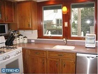 AUDUBON-Contemporary-open floor plan-natural woodwork. LR has cathedral ceiling w/open stairway w/unusual millwork. 2 BRS&1BA down, 1 large BR & bath up. Full bsmt, 1 car gar, gorgeous landscape w/pavers. $279,900