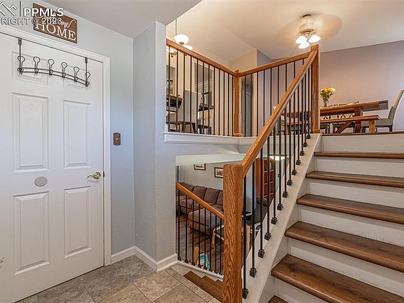 Welcome to 270 Saddlemountain Drive, a charming residence nestled in the desirable Rockrimmon community of Colorado Springs. The exterior of the property has been freshly painted, exuding a welcoming vibe and enhancing the overall curb appeal. One of the standout features of this property is its expansive backyard, providing ample space for outdoor activities and entertainment. With lush green grass and an easy to maintain landscape, comes with two storage sheds, the backyard is a true oasis. Whether you envision hosting lively gatherings, relaxing in the shade, or simply enjoying the tranquility of nature, this space has it all. Step inside and be greeted by an upgraded kitchen featuring soft-close cabinets that add a touch of elegance and convenience. The updated cabinets not only enhance the aesthetics of the kitchen but also provide a seamless and quiet experience. The combination of luxury vinyl plank flooring and tile throughout the house offers a perfect balance of durability and style, making maintenance a breeze. Bright windows throughout, two good size living spaces and a perfectly placed wood burning fireplace in the lower level. The location of this home will allow you to enjoy easy access to nearby parks, hiking trails, and outdoor recreational opportunities, allowing for an active and fulfilling lifestyle. The neighborhood is quite, well kept and doesn't have an HOA. Huge established trees provide lots of character and shade! Great schools too!