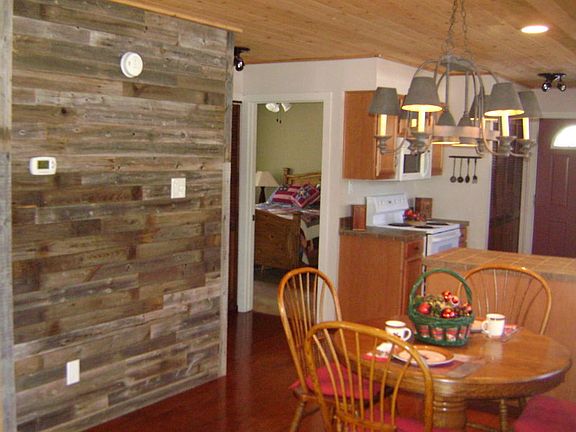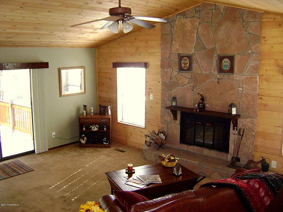Must see this Year-Around Livable Affordable Mountain Home. Great room with vaulted T&G ceilings and wood burning fireplace. Open kitchen has lots of counter space and cabinets. T&G ceilings throughout. Master bedroom has extra added room that can be used as an office or sitting area, and has sliding door to covered deck. New forced air furnace, new electric plugs and switches, GFI outlets, new ceiling fans throughout, new light fixtures, new bathroom accessories and locks sets & knobs. Insulated pipes and on a drain down system for easy winterization. Large covered deck off living room. Huge shed to store your toys. Comes with a One Year Home Warranty.