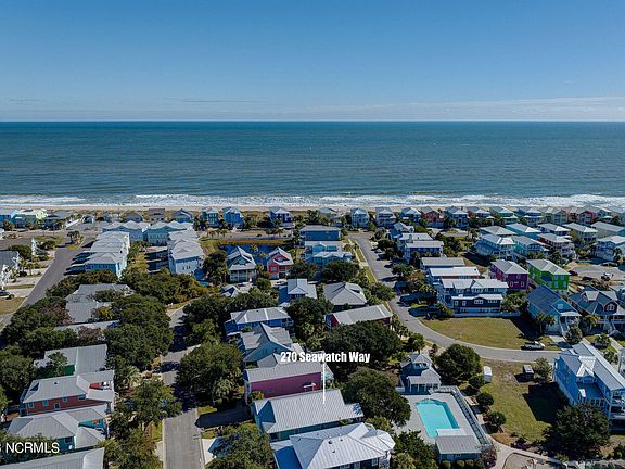 Stunning Beach Home, Custom built by Greg Stier and Like-New! Offered beautifully furnished including most indoor furniture, outdoor furniture, propane fire pits, gas grill, all appliances and televisions (see exception list),. This makes it easy to move right-in and start enjoying immediately! 270 Seawatch Way has 3 spacious bedrooms, 2.5 baths and 2746 sq. ft. It is pristine and spotless inside. There is a large main-level Master Suite with a big walk-in closet and floored attic access. The 3rd bedroom is over-sized and can easily accommodate several beds/bunk beds if desired! There is an elevator, large garage w/ epoxy flooring and an abundance of storage space. There are 10ft ceilings on the main level, wide hallways and an open floorplan which is ideal for entertaining. The kitchen is spectacular with tons of cabinet and counter space, and a giant island for seating. So many thoughtful features inside, including a hidden-hose central vac, laundry area w/ sink, a cubby desk, gas fireplace, custom trim work, beautiful flooring, rod-less planation shutters and more! The home was built to optimize a healthy lifestyle with a whole-house water softener, reverse osmosis and water filtration systems. Find peace of mind and ease with the installed whole-home Generac generator that runs off a 500-gallon propane tank, and impact doors and windows. Energy efficiency is elevated w/ full foam insulation in the attic. Enjoy the sights and sounds of beach living on the front or back porch. Beautiful fenced backyard with a covered patio, outdoor TV, outdoor shower, mature landscaping. There are 2 water meters which provide added efficiency and lower costs. Gutters w/ leaf guards keeps water away from your home. The home is located outside of the flood zone, so no flood insurance is required. Seawatch is a beautiful seaside community with private gated beach access, a seaside tiki bar, pool, tennis/pickleball, playground, gardens and more. Short term rentals are allowed.