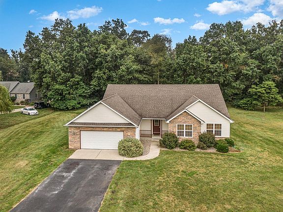 Cozy Ranch on a little over an ACRE, in a Beautiful Subdivision with easy access to major roads. Just 12 Minutes to I65 or half hour to Valparaiso.. 3 Bedrooms, 2 Baths and lots of storage. Master Bedroom has a large walk in closet, Master Bath and small dressing room. Living Room boasts a beautiful wood burning fireplace and vaulted ceiling. Kitchen/Dining combo is large enough for a group to sit around the table or tables. The extra 2 Bedrooms are nice size and separate from the Master. Finished Laundry Room with utilities easy to access. Two and a half car Garage with built in shelving and closets. Enjoy the large yard with a tree line in the back. New Furnace in 2020.