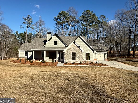 Vision Home Crafters | The Chestnut Floor Plan | Estimated January Completion. TAKE ADVANTAGE OF OUR GRAND OPENING PRICES!! Welcome home to this charming newly designed ranch-style plan under construction in quaint Monroe, Georgia. Designed for effortless, single-level living, this true ranch greets you with a warm fireplace-centered living room the moment you step inside. The open-concept kitchen overlooks the dining and living areas and features a large walk-in pantry, soft-close cabinetry throughout, and a gas cooktop with vent hood, plus a built-in oven and microwave. The spacious primary suite is thoughtfully set apart from the three secondary bedrooms for added privacy. Its spa-like bathroom offers a free-standing soaking tub, a beautifully tiled shower, and elegant finishes you'll love coming home to. Convenience continues with a laundry room featuring a wash tub, perfect for everyday chores. Outside, you'll find both a 2-car side-entry garage and an additional 3rd-car carriage garage, offering plenty of storage and parking options. Crafted with comfort and style in mind, this new ranch is the perfect blend of modern living and small-town charm-don't miss your chance to make it yours! Ask us about our Current Buyer's Incentive of $5,500 with use of preferred lender!