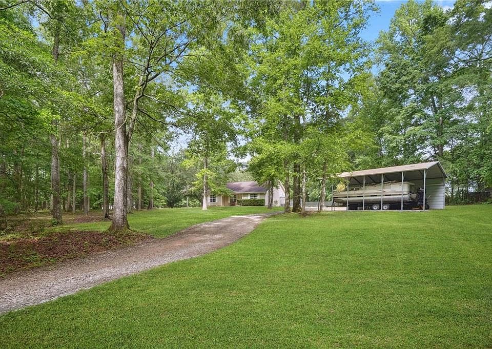 Charming 3 BR 2 BA ranch home on a 1+ acre beautiful, wooded, level and private cul de sac lot with fenced back yard. New carpet and laminate flooring throughout. Freshly painted interior. New kitchen cabinets and counters. Oversized master BR with spacious walk in closet. Split bedroom plan with oversized secondary bedrooms as well. Fireplace in great room. Fireplace freshly cleaned and serviced. Laundry room with room for storage and pantry. Detached 18 x 30 covered carport for parking of cars, boat or camper. Minutes to shopping, restaurants and schools.