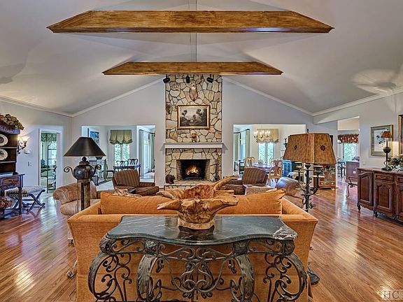Atop Thistle Drive in the Highlands Country Club Community is a phenomenal perch on 1.5 acres, yet close to downtown Highlands. An adjoining 1.6 acre lot is available. Enter the property through Stone Pillars, passing beautifully landscaped garden areas to access the welcoming Front Porch of this home. A pathway to the nearby Fire Pit conjures thoughts of memorable gatherings in this setting. The double door Entry opens to a stunning Great Room with beamed ceilings complimented by a floor-to-ceiling Stone Fireplace and Cathedral Windows. The VIEW overlooking Highlands Country Club Community in the forefront with the long range vista of Blue Ridge Mountains spanning to your right is fabulous. Included here is Dining Area, 2 Seating Areas plus a former piano Gallery Area. The adjoining "Eat in" Kitchen with upscale appliances includes 2 wall ovens and a Bar Area. The generous Pantry/Laundry with a second refrigerator and Prep Counter facilitates entertaining. One Level Living continues throughout the entirety of the home. The elegantly appointed Primary Suite dramatically displays an astounding angle of the surrounding VIEW. On the opposite side of this room, a spacious Master Bath with His and Hers Quartz Vanities, has a separate Shower and Toilet Room. The Second Bedroom features Garden VIEWS and lovely glass shelving. It once was used as an Office. The Third Bedroom brings an added dimension of Garden space to VIEW and has a luxurious en-suite Bathroom. And, the Bonus Room features yet another captivating mountain VIEW. This is currently used as an Office, including custom cabinetry. This home, equipped with a generator, ensures uninterrupted comfort year round. Plus, a "push button" winterizing system for times spent away. This home is where one of the Founders of Highlands Country Club, forming private owner membership in 1981 in this vintage 1928 Club. Though Club membership is not required, here is such a special place to be...so Close to Heaven !!!