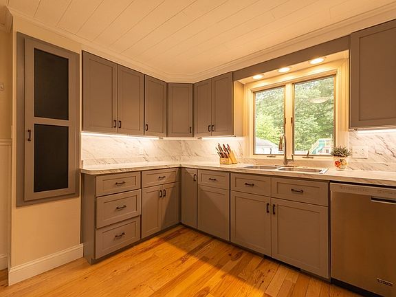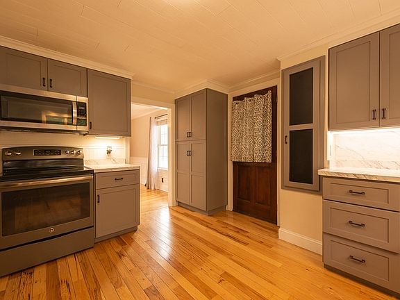Curb appeal! Fall in love with this charming 3 bedroom Cape with an updated Kitchen, new 1/2 Bath, planked ceilings and hardwood floors throughout – nothing to do but move in! First floor features a spacious Dining Room with wainscoting, Living Room with bay window, three season Porch and a multi-use space perfect for a Mudroom or Office. Second story has three Bedrooms and a Full Bath. Oversized detached 2 car Garage with additional heated Workshop is an ideal space for woodworkers and car enthusiasts. Two sheds provide plenty of space to store your garden equipment and tools. All set on a large flat lot.Improvements include newer windows, siding, roof and water heater. Convenient commuter location close to parks, transit, and shops. Not to be missed!