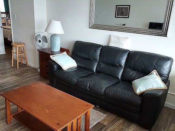 Condo for sale by owner, 567 sq ft, one bed, one bath. Turnkey, completely furnished and including all of the linens, dishes, pots, pans and silverware. Queen size bed, chest of drawers, side tables, kitchen table and chairs, leather couch, coffee table, electric range, water heater, refrigerator and many other furnishings. Very desirable rental unit. Third floor, top floor unit on the end of the building, view of Hilo Bay over top of downtown Hilo. Completely remodeled two and a half years ago with brand new interior and wiring, flooring and painting. One off-street parking spot, water and trash included with monthly condo fee. Washers and dryers in building laundry room. Within walking distance to grocery, shops, museum, churches, farmers marker, bus stop and cinema. University and hospital within two miles.