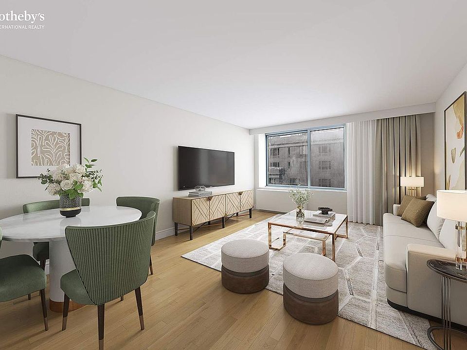 This inviting one-bedroom home at The Grand Chelsea offers an ideal combination of light, space, and function. With a west-facing exposure, the apartment is sun-flooded throughout the day and features a spacious comfortable layout.