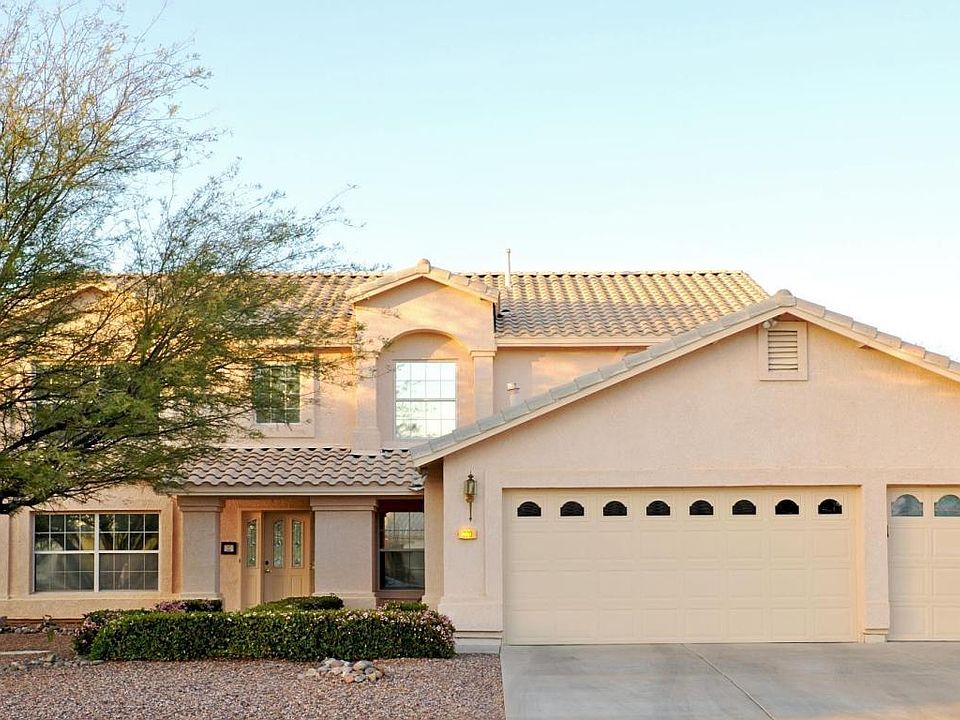 For more information on this property, contact the Listing Agent, Don Vallee - Vallee Gold Team at (520) 544-5555 or Don@donvallee.com. This contemporary style home has been lovingly cared for inside & out which translates to a feeling of being "at home" from the moment you step into thehome's welcoming foyer. An open, light, bright & very immaculate interior is immediately on display, & your eyes will focus on the marble floors, vaulted grand staircase & great room's attractive fireplace. Flanking the foyer is a generous dining & living room. Beyond these rooms you will discover a well-designed kitchen with an abundance of cabinetry, breakfast area & bar, & large covered patio. A private master suite includes soothing garden tub, huge walk-in closet. This well-appointed home includes 5 Bd, 3 Ba, 3385sqft, media room, huge laundry, & 4 car garage. Outdoors enjoy a lap pool w/child fence, grass area, & trees.
