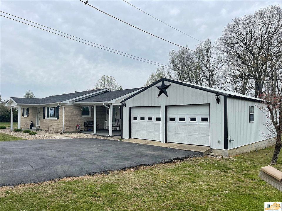 A super house in a great location. Nicely remodeled 3 bedroom, 2 bath home on a large (8/10 acre) lot with large garage building and nothing but cows and farm fields in front and behind. Home features a remodeled kitchen with those white cabinets everyone is looking for, and newer appliances. A 2-year old HVAC system will keep you both warm and cool, and a 3 year old roof will keep you dry and happy. Home has replacement windows, and all but 4 were replaced less than 2 years ago. This home is clean, solid, and comfortable. Outside there's plenty of room for a garden, or whatever you need. A metal storage building with covered shed houses the outdoor tools, and a nice 24'X36' unattached garage will protect your toys and autos, and even leave room for storage and a work area. Located just minutes east of Russell Springs, this place is convenient to everything Russell County has to offer, and it will feel like home the first time you enter. Don't miss this one, call today to schedule a private showing.