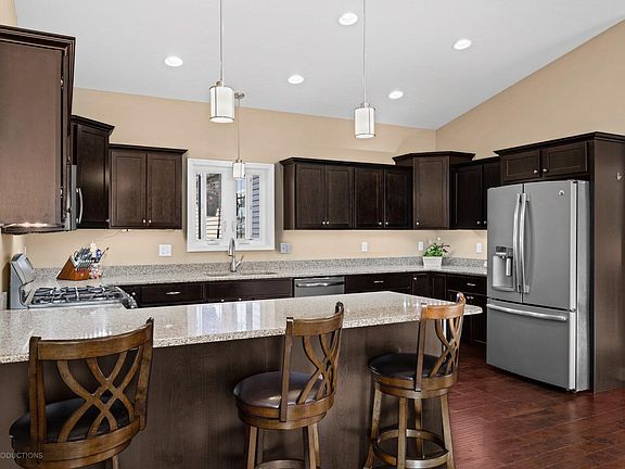 Welcome to your dream custom-built home in the serene and prestigious community of Eagle View! This stunning ranch-style residence, nestled on a quiet cul-de-sac, offers the perfect blend of comfort and tranquility and no through streets or traffic. With 5 spacious bedrooms and 3 full baths, there's plenty of room for family or guests. Or turn one of the bedrooms into a home office or hobby space. The beautifully finished walkout basement adds a versatile area for entertainment, relaxation, or fitness. Enjoy picturesque views and peaceful living at this property which backs up to the lush greens of the Golf Course at Aberdeen. Imagine waking up to the serene beauty of the golf course every morning and spending your evenings watching the sunset from your backyard and deck. The open-concept living area, filled with natural light, flows seamlessly into the gourmet kitchen, making it ideal for both everyday living and entertaining. The master suite offers a private retreat with a luxurious en-suite bath. Located just a few miles from downtown Valparaiso, you'll have easy access to charming shops, fine dining, and vibrant community events. Additionally, this home is within the award-winning Valparaiso School System, ensuring top-notch education for your family. Don't miss the chance to own this exquisite, custom home in one of the most sought-after locations. Schedule your private showing today and experience the perfect blend of luxury and comfort!