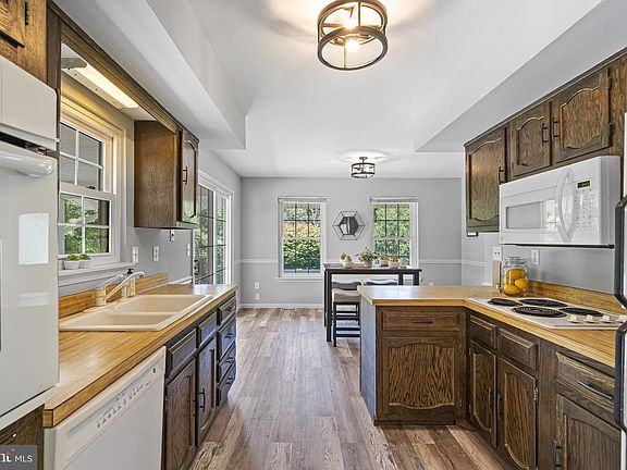 This sweet house on a hill is located in the established neighborhood of Apple Greene. The main level hosts the living room, dining room and eat-in kitchen with two sliding doors to the carport. Four bedrooms and two bathroom are only eight stairs up to the upper level. Five steps down and you're on the lower level and walk into a finished family room with a floor to ceiling brick wall fireplace and half bath. The back of the lower level is currently unfinished and walks out to the back yard. The deck is ready for all of your family barbecues and connects to carport where there is ample parking and a paved driveway pad. The wooded backyard offers a front row seat to the change of seasons and plenty of privacy. There is also a shed for storage or tools. Conveniently located to shopping, restaurants, Dunkirk Park and schools.