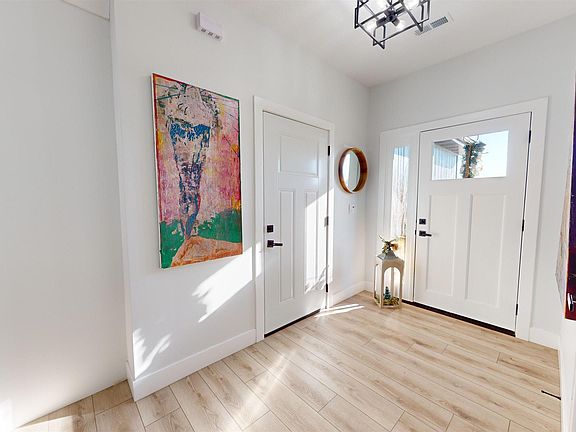 Step into this stunning home in the desirable Gables neighborhood, where thoughtful design and modern features blend seamlessly. This 3-bedroom, 2-bath beauty welcomes you with a warm and inviting foyer that sets the tone for the rest of the home and features an open-concept design with spacious living areas that flow seamlessly together. The bright white kitchen is a showstopper, boasting a walk-in pantry, a large kitchen island with a breakfast bar, and an adjoining dining area—perfect for entertaining. The living room is equally impressive, with vaulted ceilings, a cozy fireplace, and plenty of room to relax. The primary suite is your personal retreat, offering a spacious bedroom with eye-catching barn doors. The luxurious en-suite bath includes a walk-in shower, double vanity, dressing table, water closet, and a large walk-in closet. Two additional bedrooms are generously sized, offering comfort and versatility. Step outside to enjoy the expansive backyard, complete with a large patio perfect for entertaining, a shed/she-shed for added convenience, and a fully fenced yard that provides privacy and security. This home is beautifully designed with entertaining and comfort in mind. Schedule your private tour today and experience all this gem has to offer! Call today to schedule your showing!