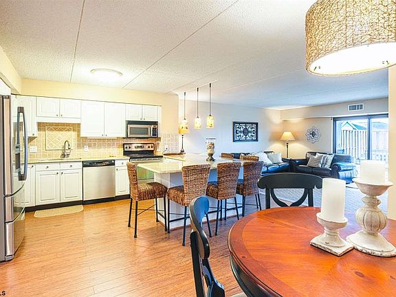 Come view this incredible, spacious, beach-block condominium sporting two bedrooms and two bathrooms along with a wide-open floor plan that is perfect for both shore entertaining and the shore enthusiast. The kitchen boasts all stainless steel appliances, ample storage space and cabinets, and an island that seats six making it perfect for family gatherings and dinners. The huge, open living room exudes a modern elegance and leads directly out to your private deck, where you can entertain under the sun steps from the beach. Your private deck then opens to a common deck which provides both ocean and bay views. Throw your towels and swim trunks in your own laundry room equipped with a washer and dryer after you either take a dip in the ocean or in the condominium's pool on the beach. This condominium also comes with private storage space and your own private, parking space.