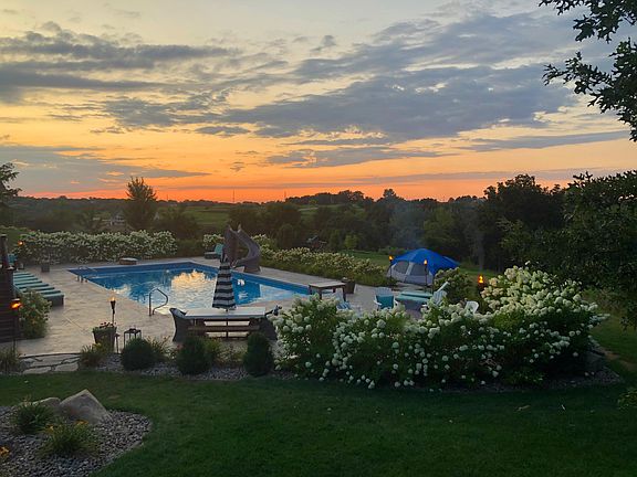(Call 641-780-1302) An entertainer's dream! This is your chance to own a turn-key home on the largest lot in Bos Landen! This 7-bedroom home was built in 2013 and has over 7,000 square feet of finished living space. Nestled on 3.3 acres of land, enjoy beautiful views of the open skies, sunsets, backyard privacy and mature woods. It was built with hosting and large-gatherings in mind, and is full of charming and thoughtful character around every corner. Step through the front door and you will find reclaimed barn doors leading to a first-floor office complete with built-ins and a desk. Continue on to the master bedroom complete with a marble-tiled bathroom and walk-in closet. A 20-foot vaulted great room has an authentic-stone gas fireplace. Reclaimed beams can be found on the wooden ceiling, accenting the picture-windows overlooking the backyard. An archway leads to an open-concept kitchen with a 12-foot quartz island. Custom cabinetry, a 6-burner gas stove, stainless steel appliances and walk-in pantry make cooking and hosting a breeze! Off the kitchen is a 4-seasons sunroom connecting to a maintenance-free deck overlooking the backyard. Also off the kitchen is an archway leading to a large dining room with a bay window. A powder room, laundry room and mudroom make up the breezeway leading to the 3-stall garage. The 2-story foyer stairway leads you to 5 bedrooms, a 3/4 bathroom and a jack and jill bathroom. One large upstairs bedroom is wired for TV and could be converted to a TV/lounge/family room. 9-foot ceilings, custom woodwork and crown molding can be found throughout the entire house. Walk down to the finished walk-out basement and you will see a reclaimed-brick accent wall setting the tone for a warm and inviting gathering and rec space. To the left of the stairs you will find a playroom complete with built-in shelving, and a tuck-under garage full of room for storage. To the right of the stairs you will find a large rec room, a media room with a projector screen, a guest bedroom and another full bathroom. A highlight of the basement is a second full kitchen- perfect for pizza parties and popping popcorn for movie nights! Exit out the sliding doors and you enter the backyard oasis. Created to escape and enjoy! Stamped and stained concrete surrounds a 25x50ft heated inground pool. Other backyard amenities include a hot tub, water slide, built-in firepit and a sandbox/playset nestled in the woods. Enjoy the established and extensive landscaping, including the beauty of over 100 hydrangeas around the property! A 2019 addition to the house was the building of a 2-stall garage shed. Connected to the house with a deck and pergola, it is fully heated and ready to be used for a workshop, extra yard storage, or a place to store those vehicles. Above the shed is 600+ feet of finished bonus space. It is fully temperature-regulated and completely finished with ship-lap. It's truly a must-see with endless potential! Nestled on the edge of the Bos Landen Golf Course development, you can enjoy the feeling of space and openness, while still having easy access to Lake Red Rock, beautiful downtown Pella, and are just minutes from hopping on the highway for trips to Des Moines. This property is truly unique. Everything has been done for you down to the very last custom detail. Here's your chance to make it your home! Serious, pre-approved inquiries only. Buyer's agents are welcome to call.