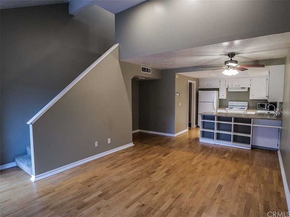 Great one bedroom condo close to downtown Brea, shopping, transportation and more. Open floor plan with a large great room and kitchen with peninsula breakfast bar and large walk in pantry. Wood floors, recessed lighting, and modern paint colors are just a few of the creature comforts in this low maintenance condo. The large sliding glass door that opens to the private patio lets lots of light in helping to make the space seem even bigger. The upstairs bedroom feature a full bath, large basin style sink, and walk in closet. A/C unit is brand new within the last six months! Just steps to the pool, club room, and community laundry this charming property is all about convenience and simplicity. Located close to downtown Brea, the Brea Mall, SOCO District, Craig Park, Fullerton Sports Complex, Fullerton Loop and more. Come take a look today.