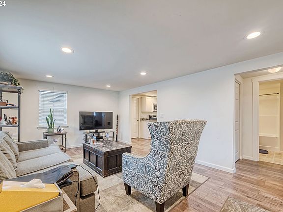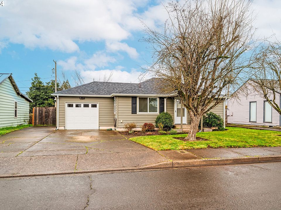 Welcome to this lovely, updated home that features three bedrooms and two full bathrooms in 1092 square feet. You enter into the living area with laminate flooring. The kitchen is updated with granite counters and stainless steel appliances, refrigerator included. The dining room has sliding doors that access the covered patio. Spacious primary bedroom has double closets, wall to wall carpeting, and ensuite bathroom. Two more bedrooms are located at the front of the home next to the second bathroom. Both bedrooms have wall to wall carpet and closets. This lovely home has a ductless heat pump backed up by cadet heaters. The one-stall garage has finished walls, built-in cabinets, workbench and shelf, as well as attic access with ample room for storage. The back yard is fully fenced and has plenty of room for your garden or pets. Don't miss the floor plan included with the photos. Call your agent for a private showing today!