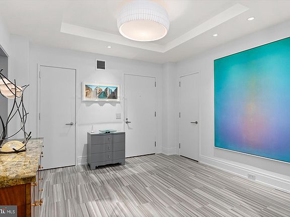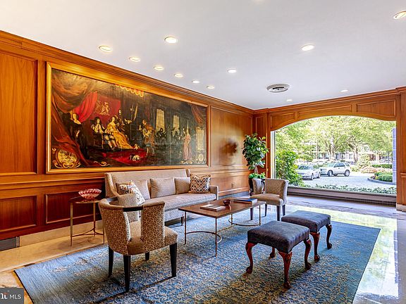 Welcome to the -15 tier of the prestigious Shoreham West coop. This is a rarely offered 3-bedroom corner home, handsomely designed by the award-winning architect Stephen Muse of Muse Associates in Bethesda, MD. From the minute you open the front door, you are greeted by an abundance of natural light streaming through oversized windows and balcony doors. The tree-lined, sunlit views evoke the feeling of being in a private treehouse—serene, expansive, and quiet. The layout of the space is exceptionally well-considered, making it ideal for entertaining and gatherings, while also perfectly suited for comfortable daily living. All doors and hallways are ADA compliant, and there is plenty of wall space for art lovers. The gracious foyer, complete with a powder room and two over-sized coat closets, leads to a large living room, which features a 9-foot tray ceiling. Extending beyond the living room is a spacious private balcony, perfect for enjoying the outdoors. The dining room, also adorned with a 9-foot tray ceiling, can accommodate large gatherings and offers seamless access to the large gourmet kitchen. Custom built-in cabinets in the dining room offer display space for decorative elements and hidden storage. The kitchen has abundant storage and counter space, and contemporary appliances including a six-burner cook top, double ovens, a warming drawer, dishwasher, hot/cold water filter, and a Sub-zero refrigerator and freezer. It was designed to maximize the opportunity for gourmet cooking, complete with a center island. A handmade 4-panel shoji pocket door separates the kitchen from the dining room allowing you to close the space off from company if desired. There are three large bedrooms on the private wing of the apartment The primary bedroom is a true retreat, boasting a spacious dressing area/walk-in closet and an en suite bath, including a large shower with seat and an ample linen closet. The second bedroom, currently used as an art studio/office, provides flexibility for a variety of uses. A custom glass and wood closet is built into one end of the spacious room and a wall-to-wall desk with storage is built into the window side. The third bedroom, which is currently used as a family room/office, offers bright, corner views of the surrounding trees and features custom media built ins. These two bedrooms share a second full bath with a large soaking tub, plus a dressing room with closets. Both bathrooms have heated floors. Completing this private wing is a separate laundry room with additional built-in cabinets, counter space, plus a utility sink. This home also conveys with a two-car tandem parking space that is EV charger-ready, as well as a storage closet just outside the back door service area, plus an ample storage unit in the basement. There is storage galore in this apartment, much of it hidden! The building's rooftop level is a true highlight, offering panoramic views of the Washington Monument, National Cathedral, and Rock Creek Park. The expansive rooftop terrace features multiple seating areas and a grill for resident use. It is complemented by several interior amenities, including a modern lounge, a full kitchen, and a state-of-the-art fitness center. Residents also enjoy access to a dedicated artists' studio, a private wine storage room, a doorman, a 24-hour concierge, and a manned garage entrance. The secure garage includes a manual car washing station, a pet washing/shower station, and the ability for owners to install personal EV chargers at their parking spaces. Ideally located, the Shoreham West is just two blocks from the red line Metro, and cultural landmarks such as the Phillips Gallery, the National Zoo, and Rock Creek Park, with a variety of dining options along Connecticut Avenue. Recognized for its architectural significance, the Shoreham West Coop is featured in James M. Goode’s acclaimed book “Best Addresses.” The monthly