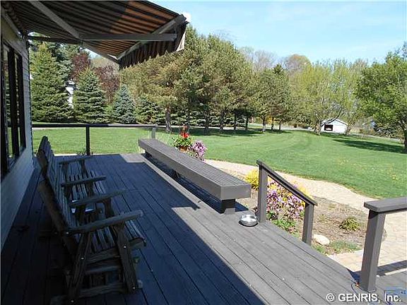 1990 Contemporary on 5 acres with a view of Keuka Lake. Home features, new furnace, first floor full bath and bedroom, new French doors, new windows on Eastside of house, central air, motorized awning over the deck and new stairs leading to the basement. A new stone paver walkway leads to the front of the home past well maintained flower gardens. Sit back on the deck and enjoy great views of the Finger Lakes rolling hills.