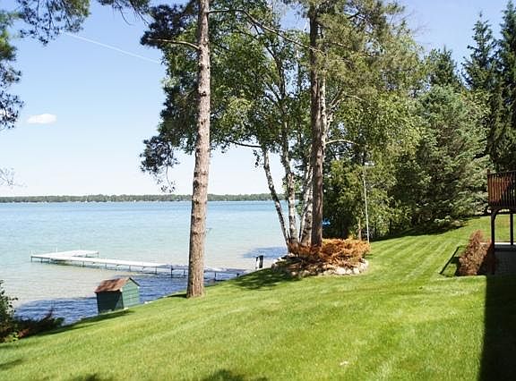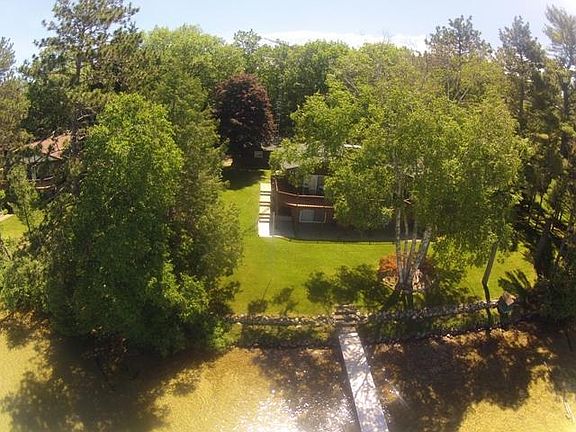 This is a truly special lakefront property with 200' of exceptional frontage and a maturely wooded setting. The home was built for entertaining with spacious living areas, sweeping water views, a walkout basement with large rec area, sunken fireside seating and large bar. It is the most pristine 1980's decor you'll find but the painters are coming in soon to bring it up to date. Get your deal now and do the updating yourself if you like. Heated attached garage, additional detached garage for all the toys. This wonderful family home is waiting for yours to enjoy!