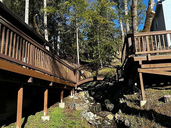 Two Lots for the price of one. Empty lot next door is included in this price. The home is a three bedroom two bathroom home is turnkey ready! Flowing through the back yard is a creek creating a tranquil ambiance. This home is well taken care of and included a new dishwasher, a refrigerator , two car garage , new propane tank, newly rebuilt front deck, new bathroom fixtures. The kitchen has an abundance of storage space and the home has many pantries as well as the garage has a loft for storage. Private decks encourage bbq's and outdoor breakfasts absorbing the beauty surrounding this quiet neighborhood of Brook Trails.