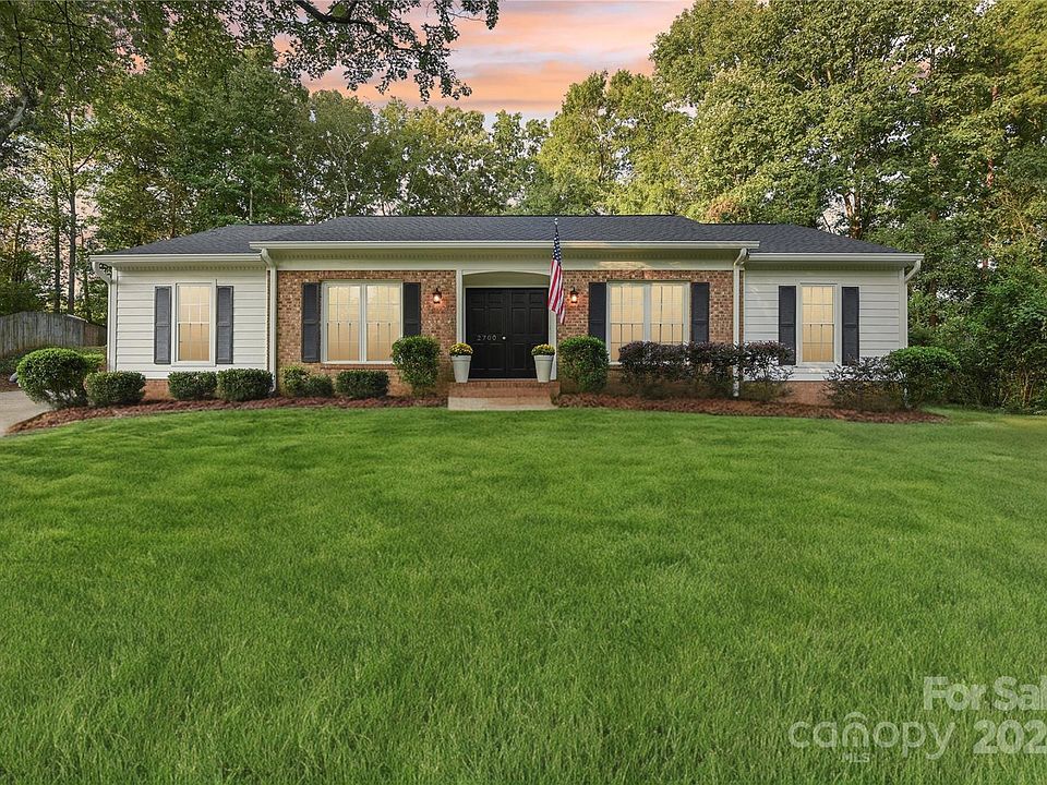Move-in ready & nestled in the desirable Huntingtowne Farms, a South Park community, this charming brick ranch sits on a quiet cul-de-sac, offering one of the largest lots in the neighborhood. Enjoy a private backyard oasis with a canopy of trees, cozy fire pit, & patio—perfect for unwinding. The open floor plan is filled with natural light, showcasing beautiful new hardwood floors installed in 2024. The updated eat-in kitchen boasts granite countertops, a stylish tile backsplash, & stainless steel appliances, while the spacious primary suite features a walk-in closet and en-suite with a tiled shower. Recent upgrades, including new Hardie board siding, roof, large 12 x 12 workshop w/loft storage, interior and exterior fresh paint, make this home move-in ready. Neighborhood perks include easy access to the greenway, parks, neighborhood elementary school, & the optional swim and tennis club. This South Park community is close to shopping, dining, and all the conveniences you’ll love.