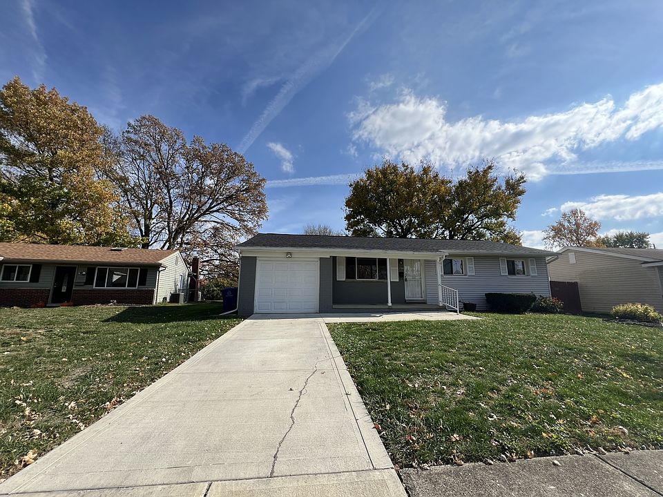 This beautifully renovated 3-bedroom, 1-bath home combines modern updates with cozy charm. Fresh paint and flooring throughout the home. The updated kitchen features sleek granite countertops, contemporary white cabinetry, and new stainless steel appliances (stove, fridge, microwave/rangehood), making meal prep a breeze. You will find all the storage you will ever need in this spacious kitchen. Steps to your finished basement are right off of the kitchen. So you will enjoy additional space here, ideal for a playroom, home office, or entertainment area. This home boasts a living room at the front of the house and a family room with fireplace at the back of the house. Sliding glass doors in the family room lead you right out to your spacious fenced yard. The yard also has a large storage shed for outdoor tools, mowers, etc. All bedrooms are located in the rear of the home with the bathroom. Bathroom has modern subway tiles, updated vanity, and lighting. The central air and heating will keep you comfortable all year long. Additionally, there are washer / dryer hook ups in a portion of the basement.
