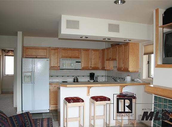 This bright and airy 2 bedroom 2 bath Terraces condominium is located steps from the slopes. Perched on a gentle hillside next to year-round Burgess Creek, the sounds of babbling water welcome you home during the summer months, while spectacular views of surrounding ski runs entice you during the winter. This very comfortable unit sleeps 6 so don’t forget to bring your family and friends. Whether you choose a day spent ripping up Steamboat’s famous Champagne Powder or taking in an epic mountain bike ride, your Terraces condo makes a perfect home base. Grab a hot cocoa or your favorite cold beverage and pull up a comfy chair on the huge covered terrace and unwind as the alpenglow covers Mt. Werner. Entertain your guests in the turreted dining area, where panoramic windows bring the Rocky Mountain landscape right inside. The kitchen is well appointed and graciously designed to include Villeroy & Boch tiles and a convenient breakfast bar where you can power up quickly before you hit the