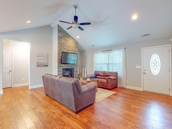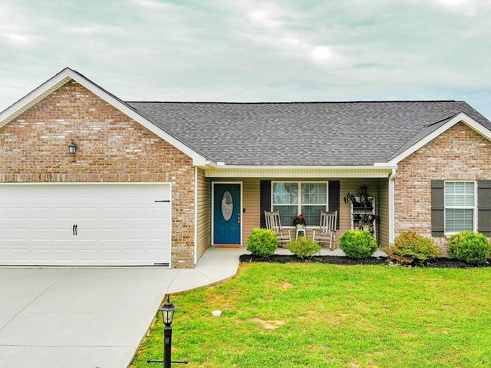 This adorable 3 bedroom/2 bathroom rancher is ready for its next family! Enjoy the split bedroom style, updated exterior, spacious backyard and 2 car garage. You will love life on the quiet cul-de-sac and low HOA fees and a neighborhood pool and playground. Open Concept Living/Kitchen/Dining area with a stone electric fireplace and beautiful wood flooring. Kitchen has gorgeous cabinets and granite countertops. Home only 6 years old so all systems have plenty of life remaining! Everything you need on one level!