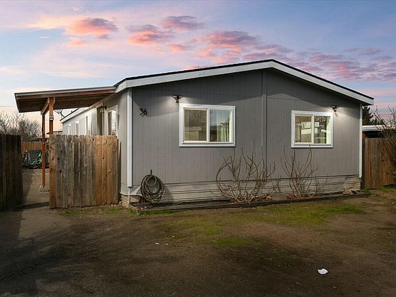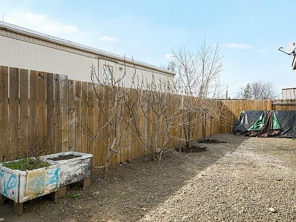 Beautifully updated 3-bedroom, 2-bathroom home with a bonus room that can serve as a 4th bedroom! This spacious home offers a modern kitchen with granite countertops, maple cabinetry, stylish backsplash, electric range, microwave, and pantry. Vaulted ceilings in the living room add elegance and openness. The primary bath features a new double vanity. Enjoy a large indoor laundry room for added convenience. Recent upgrades include new insulation, T1-11 siding (1 month old), fresh interior and exterior paint (4 months), newer water heater (8 months), heat pump (1 year), metal skirting, and updated plumbing. Roof is in excellent condition (8 years old). Outside, enjoy a low-maintenance gravel backyard, two storage units, and fruit trees including cherry, peach, and more. Plenty of parking available right in front of the home. Located in a well-maintained park close to schools, shopping, and amenities. Move-in ready and waiting for you!