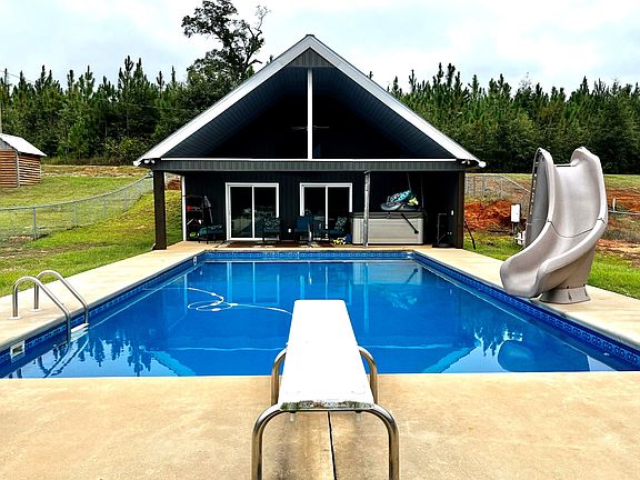 The house has a metal roof put on in 2018 (Year Built). Custom wood siding on the exterior of the home and 4 car carport attached. The home has over 2,000 SqFt of porches and the backyard gets even better... The fully fenced pool area has an additional building that has its own kitchen and half bath. Perfect hangout spot for the summer! The barn is a 50x50 with a RV lean too on one side.