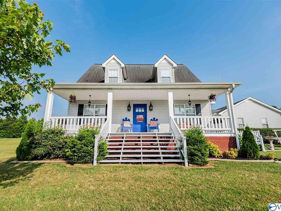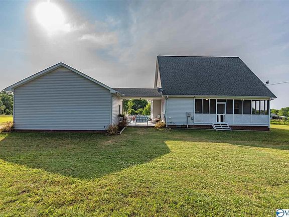 Beautiful farmhouse style home on 6 acres with approx 1650 sf. Large front porch, private screened-in back porch & patio area for entertaining. 3 BR / 2 Bath and a possible 4th bedroom/ study. Large walk-in closet in master bedroom along with walk-in shower and Jacuzzi tub. Updated farmhouse kitchen with brand new appliances and ship lap walls, new cabinets, and butcher block countertops. Vaulted ceilings, barnwood style floors, and new central heat and air installed in fall of 2018, two-car detached garage. This home is just 6mi South of Arab and 10 min to nearest boat ramp on Lake Guntersville!