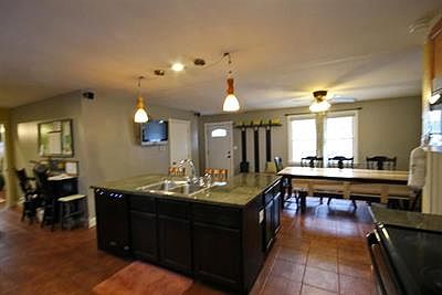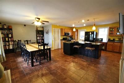 Surprisingly large and open. So much remodeling has been done! Gorgeous open kitchen with island, granite counter tops, Oak cabinets, tile flooring and nice newer appliances. Open to dining room that will accommodate a large family sized table. Mounted TV and surround sound will stay in kitchen! Charming, cozy 23x23 cedar planked family room with enormous wood burning fireplace and brick hearth. Doors in family room lead to wood deck and privacy fenced back yard. 4 bedrooms and 2 full baths. Master bedroom has crown, walk-in closet, laminate flooring and built in vanity. Granite counter in master bath. Deep garage with workshop behind it, all with electric. Lean-to behind garage with lighting. Yard barn on other side of back yard with electric. Recent updates per seller include: Granite countertops, porcelain tile, new guttering, laminate flooring, carpet, windows and exterior painting. Home warranty included.
