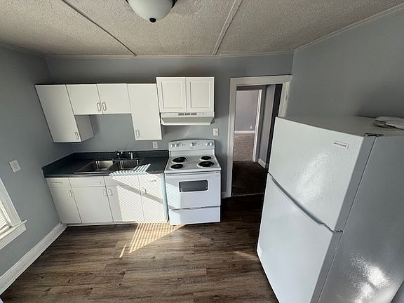 1 bed, 1 bath. Large kitchen but & living room. Washer dryer hookups, big fenced yard, parking space. Downstairs duplex.