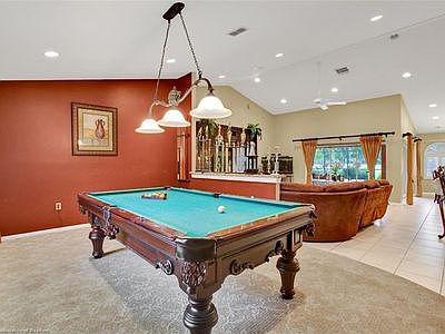 Amazing luxury home in the high demand community of Golf Hammock. If you are looking for a home with in-law quarters, a large family home, or even for two families to reside together - you have to see this one. Sprawling 5 bedrooms PLUS Office/Den. Could easily be a 6th bedroom. 5 full baths. There are 4 master suites! Brick paver circle drive and lush tropical landscaping. Step inside the front door to an impressive 36x24 great room featuring soaring tray ceiling, charming wood floors, three 14' floor to ceiling arched windows overlooking the golf course, and double french doors leading to the pool, outdoor kitchen & covered lanai. Tons of natural light. Luxuriously elegant master bedroom featuring a relaxing fireplace, and a stunning master bath, boasting a large jacuzzi tub that is surrounded by columns. Gorgeous master vanity with his and her sinks. Gourmet solid surface kitchen with a long breakfast bar overlooking the dining room , living room and billiard room. Vaulted ceilings. Awesome home to entertain in - featuring a theater room, billiard room, caged pool and brick paver lanai, hot tub, outdoor kitchen and more! This home features 2 laundry rooms, attached side entry garage and tons of storage throughout