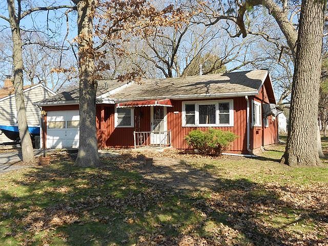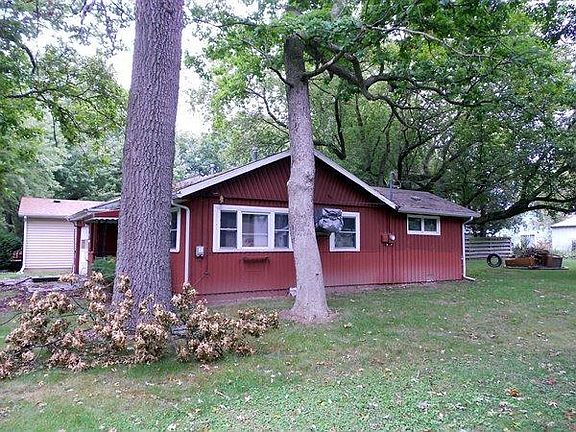 Escape to the lake with this affordable 2BR cottage that includes access to a private boat launch, swimming pier, beach and lakefront park. If you are looking for a low cost get-away, this is for you. Wood floors, knotty pine finish, remodeled bath room, large back yard with fire pit and attached garage. The bedrooms both have spacious closets, ceiling fans and plenty of sunlight from the recently replaced windows. There is extra storage off of the garage and a built in workshop.