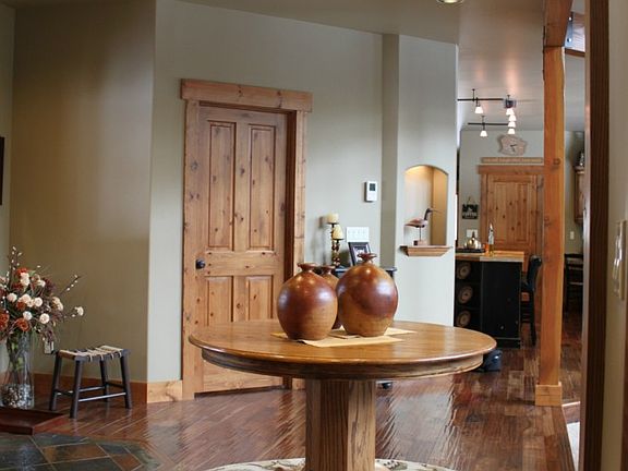 Impeccable custom home on 3.4+ private, parked out acres w/paved circular drive. Quality resonates thru-out w/distressed hardwood floors w/slate inlay at entry; granite countertops, knotty alder cabinetry & stainless appliances in kitchen; massive stone fireplace, soaring ceilings w/exposed beams in great room; sumptuous tiled master suite w/radiant heat, jetted tub & walk-in shower. Patios, fire-pit, landscaped w/sprinkler system. Bonus room above garage. Adjacent 3 acres for sale, mls #600401.