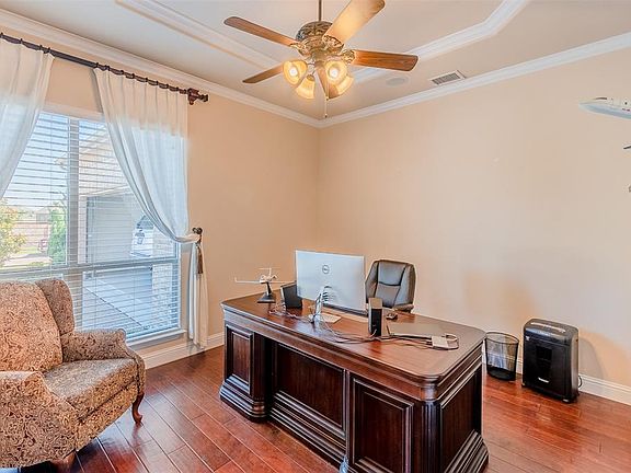 Amazing corner lot with view and pool overlooking Trophy Club Golf 15th Tee, PID's already fully paid! Main entrance opens to office opposite formal dining. Dining connects via panty and wine service bar to spacious kitchen with large island facing a relaxed living area. Great for entertaining and with view to the pool, living area features a hand-crafted stone fireplace. Enjoy a Master bedroom on the main, then follow the curved staircase to the second floor and find four bedrooms, an entertaining room complete with wet-bar fridge and microwave, and a theater room (Projection unit stays)! Home is equipped with tankless water heater, motion control lights, sound system, and main & upstairs temperature zones.