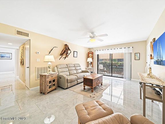 Attention to detail went into this ground floor unit in sought after Palm Colony Club Condominium. Newly remodeled kitchen and baths with all the right finishes. Relax on the screened in porch and listen to the surf and enjoy the afternoon ocean breeze. Large clubhouse, heated pool, tennis, and social gatherings in this community. The beach is just across the street so grab your fishing rod you can definitely count on catching a rocket launch. Come stay part of the year and rent the other months.