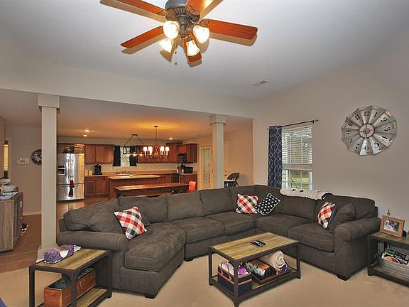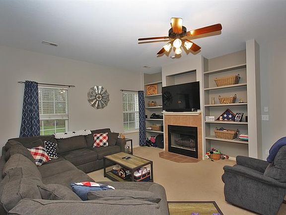 Fantastic open floor plan with high ceilings. Tons of room to move in the kitchen plus an island gives even more work space and a large dining area. A two-sided gas fireplace in the Living Room and Master Bedroom suite that also includes lots of windows, walk-in closet and tiled shower in the Master Bathroom. Covered back patio and a large, flat lot that has the perfect mixture of open space and trees for privacy.