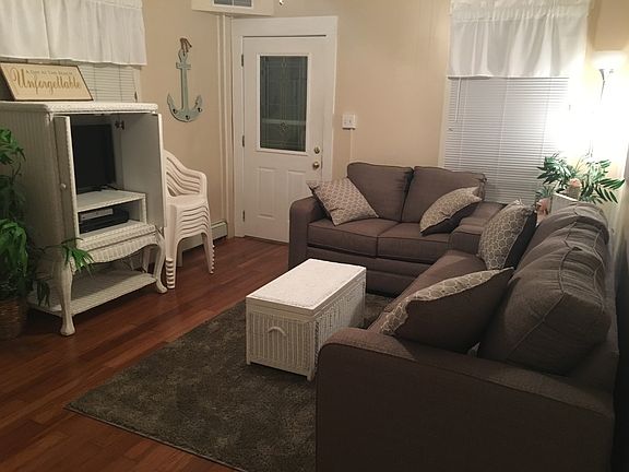 Stunning duplex style townhome w/garage. On Ocean Ave- first street facing ocean and on the corner of Ocean and Juniper where there is a huge opening so boardwalk and ocean views as well as quick access to everything! Location! Location! Location! On the prime part of boardwalk in-between the main two Morey's amusement park and water park piers! Be on the boardwalk in less than a minute from the front door! Immediate access to shopping and many of the best restaurants in Wildwood! Established rental with over 30K of rentals in 2016 and over 20K already booked for 2017 . All unearned rents and e-mail lists given to new owner at closing and current owner will help new owner with running it in 2017 season - August not booked yet in case new owner wants for personal use. Website for rentals given to new owner and paid for through 2017. New hardwood floors on 1st and 2nd floor, new quartz countertops, new stainless steel under-mount sink and fixtures, new dishwasher. Washer and dryer in home. Great floor plan! A full bath on both the first and second floor and no two bedrooms with adjoining walls for privacy! Unlike many homes on the island this home has central air and heat with heat being 2 zones (window ac on third floor) so year round living in property is possible . Heat is baseboard heat which is efficient and better for allergies etc. Beautiful thick window moldings and baseboards give this property added elegance and beauty. Beautiful covered porch for relaxing and catching an ocean breeze and hanging out with family and friends! the ALL personal furnishings in home are included- sold exactly as seen! No one above or below or on one side and ocean views! Part of a 3 unit townhouse association with this unit including right side of home and WHOLE third floor over both sides of house (second unit is left side of home and third unit is condo above garage - all with separate owners). Third floor in this home has huge bonus area of about 500 sq feet and huge storage area. This home has large garage (fits suburban with plenty of room!) and covered driveway. Multiple parking spaces. Outside shower too! HOA run by the 3 owners and covers all fire, liability and flood insurance! Grilling allowed in this HOA! Separate meters for each unit for electric and gas.