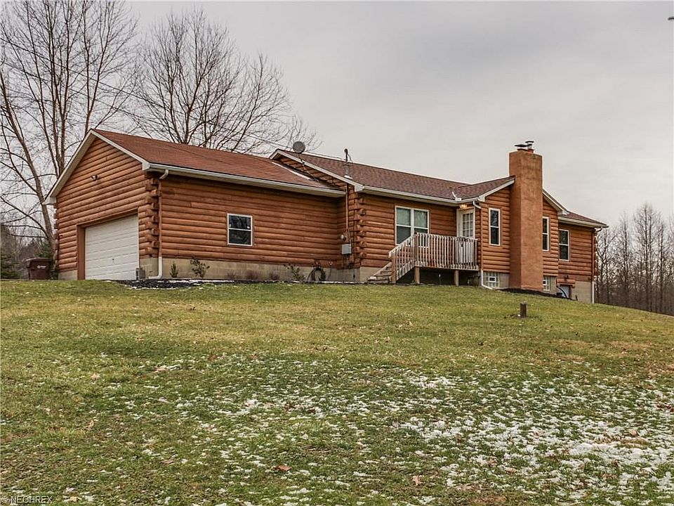 This lovely country log cabin home sits back from the road. The area is serene and peaceful, with plenty of space to roam on this 3.9 acre lot with open spaces, woods and a pond in the heart of Rootstown. The updated kitchen and spacious eating area have plenty of light coming from the large kitchen window and the sliding glass doors which lead to the large deck. Lots of counter top and storage space at your disposal in the oak kitchen. The Open Floor plan and the warmth of the wood burning stove welcome you to this 3 bedroom, 2 full bath 1500 square foot home with an additional 1500 square feet of finished walk-out lower level space, including a recreation room, an Office, exercise room and laundry/mud room. On the main floor, two bedrooms share the main bath on one side while the generous master is opposite with its own on-suite and walk-in closet. Two car attached garage. Call for an appointment to see this home today! New Hot Water Heater 2017; Central Air Conditioner replaced in 2012; Wood burner installed in 2006 and Water softener replaced in 2009; Partial roof replacement in 2013. This house is MOVE-IN-READY! Call today!
