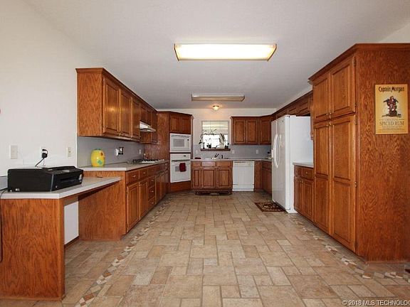 Polecat Creek, fishing, hiking, wildlife, acre plus w 3 bed/2.5 bath, fireplace, open country kitchen, 3 car garage, enclosed back porch. Master suite first level. Office, hobby room & 2 bedrooms/1 bath second level. Easy access to Hwy 75 & Creek Turnpike