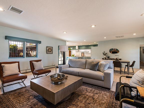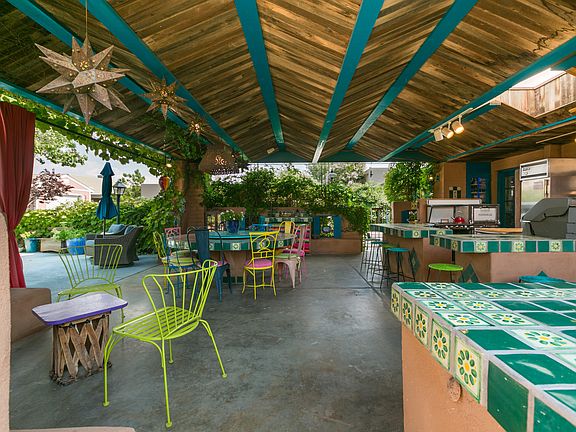 Formerly the iconic and beloved Cinnamon Morning Bed and Breakfast, this special North Valley home offers so many possibilities! Property includes a charming main home w/ 4 bdrms (3 w/en-suite baths) PLUS a separate 3 bdrm 2 bath home! Could be a great family compound! Main home includes beautifully updated kitchen w/dbl oven, gas stove, under counter micro, island with bk bar. Gorgeous! Generous primary with updated bath w/dbl sinks & walk-in shower. Updated hall bath w/vessel tub. Recent HVAC, tankless H20 heater and new roof 2024. Covered patio w/outdoor kitchen, seating and fireplace leads to 2nd home which has Primary w/bath & frplce, 2bdrms,full bath, living rm w/frplc, dining area & kitchen. Short distance to acequias, The Bosque, the Co-op. North Valley living at it's best!