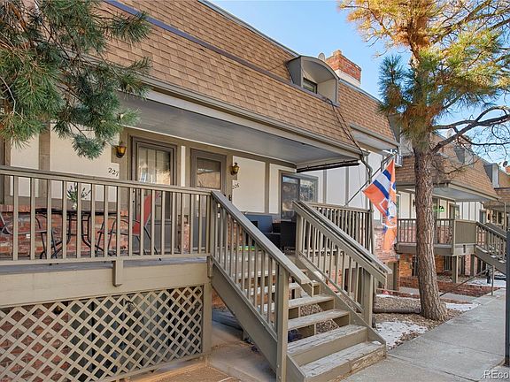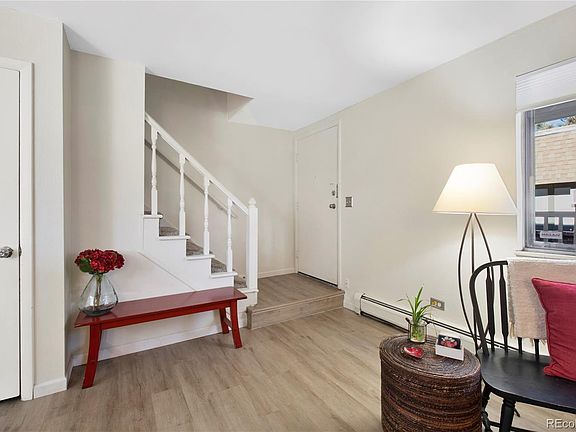 You can't beat the LOCATION of this beautiful move-in ready 2 bedroom 2 Bath Townhouse in Lexington Village! Just off I-25 and Yale, it is not only a 5 minute walk to the Yale Light Rail station but it is also adjacent to the HIGH LINE CANAL. Close to shopping, restaurants, Bible Park and Eisenhower Park. The kitchen is full of light and has a peninsula eating space overlooking the charming living room with its cozy brick fireplace. There is a large storage closet under the stairs and the main floor is topped off by a very convenient 1/2 bath. Upstairs has two spacious bedrooms. The larger one can accommodate a "California King" bed. The smaller one shares its closet space with a stackable washer and dryer. Relax with coffee or wine on the covered front porch overlooking the peaceful courtyard and community pool. The back door opens to your very own designated parking place in the carport. There is a storage space for each unit in the common room which also includes an additional coin operated laundry. The HOA covers outside maintenance including the roof, pool, heat, water, sewer, and trash. The front door faces the North and the back door faces South. This is the perfect starter home or investment property! SELLER IS OFFERING A $4,000 CONCESSION TO REPLACE THE WINDOWS.