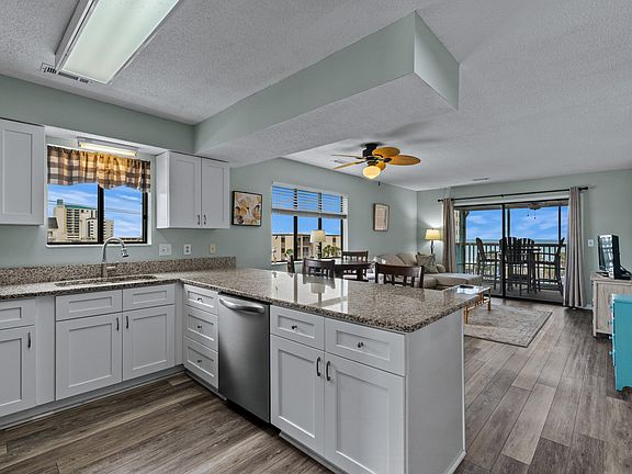 Welcome home to this coastal escape in the heart of the vibrant Crescent Beach section of North Myrtle Beach! This spacious 3 BR 2 BA corner villa offers second row ocean views from its top-floor porch and an unbeatable blend of comfort, style, and location. Step inside to a bright open-concept floor plan enhanced by an abundance of natural light pouring in through numerous windows. The inviting layout features split bedrooms for added privacy—perfect for hosting family and guests. The granite kitchen is well planned and includes soft close shaker-style white cabinetry, a counter height breakfast bar and seamlessly flows into the dining and living areas for easy entertaining or simply relaxing after a day at the beach. Luxury vinyl plank (LVP) flooring runs throughout, complementing the tasteful coastal-inspired interior paint palette. Enjoy ocean breezes and fab views from the screened porch accessible from the living room, or retreat to the private balcony which also has a separate entry from the primary suite. Partial furnishings are included, so you can move right in and start living the beach lifestyle. Amenities include community pool, grilling area, outdoor shower, and assigned ground-level storage closets for all your beach gear. Crescent Towers West is conveniently located to Barefoot Landing, top-rated golf courses, shopping, dining, and Hwys 22/31 and is perfect for a primary residence, vacation getaway, or investment opportunity. Don’t miss your chance to own a slice of heaven located just steps from the beach!