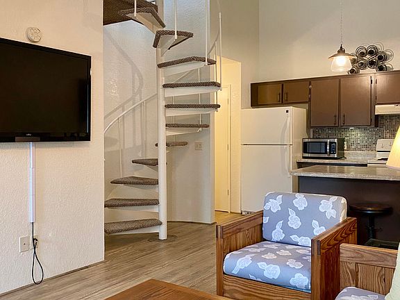 Did you miss out on winning the lottery but want to feel like you hit the jackpot? Here's your chance to snag a furnished 2 bed/2 bath unit that doesn't come around often. Vaulted ceilings w/ transom windows bring in all the natural light and allow you to watch the pine trees sway in the breeze. Open concept living is great for hosting family/friends. Downstairs bedroom is spacious and attached to a bathroom w/ walk-in shower. A spiral staircase takes you to the loft bedroom & en-suite bathroom, complete with tub/shower combo and attached walk-in closet. Unwind from a long day cozied up to the fireplace or enjoying a beverage from the charming deck w/ an extra storage closet. HOA includes water, trash, sewer & snow removal. Conveniently located within minutes of shopping, dining, lakes & trails, this condo can be the right fit for you!