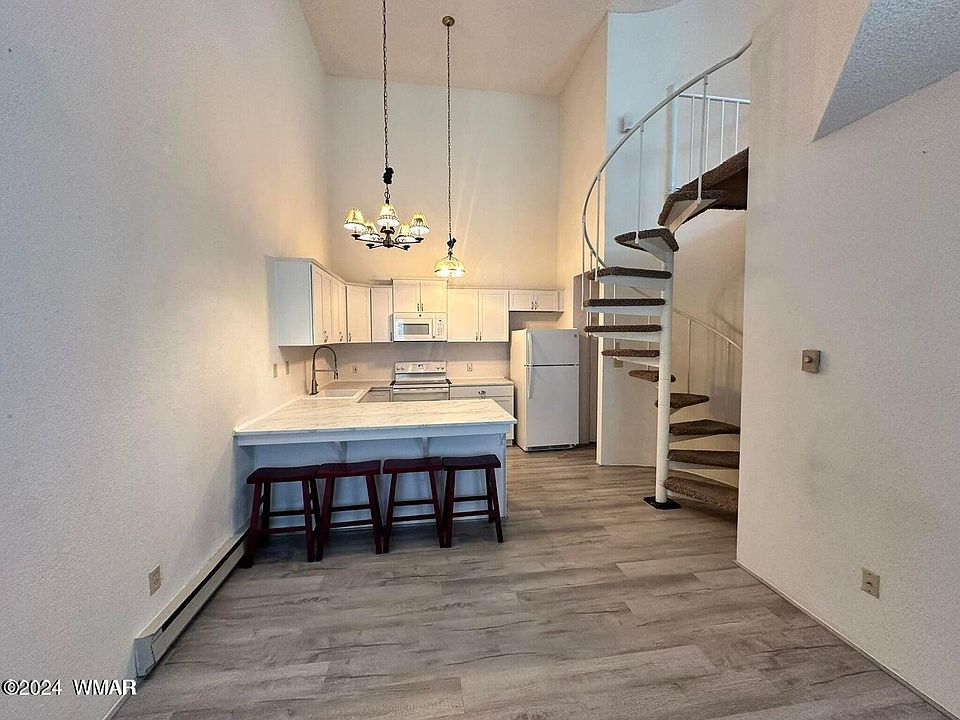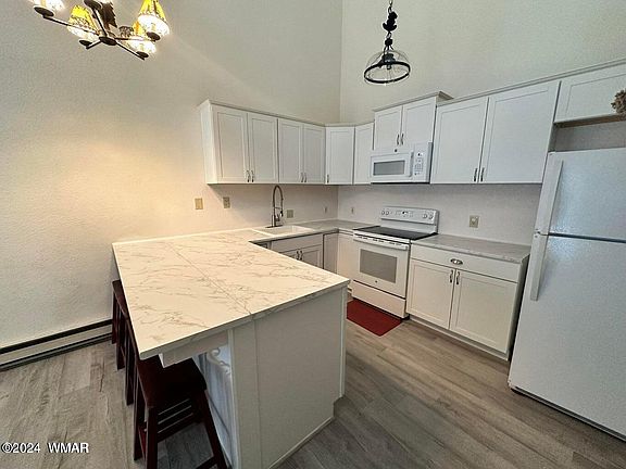 Don't miss your opportunity to get your hands on this affordable Condo located in The Pines! This two story 2 bed/2 bath unit provides a well laid out 766 sq floor plan that feels open and inviting. Wood burning fireplace and thermostat controlled baseboard heaters will keep this home cozy through the winter. Pride of ownership is obvious as soon as you walk in the door. Some of the property highlights include a remodeled kitchen, newer appliances, laminate flooring downstairs, carpet and tile upstairs, two lockable storage areas on the front porch and located in the back of the complex providing tall trees and privacy. This property is located just minutes from the heart of show low with easy access to shopping and entertainment. HOA fees cover water, sewer, trash service, exterior maintenance, and landscaping. Clubhouse and Laundromat on site, currently $250 but increasing to $275 soon.