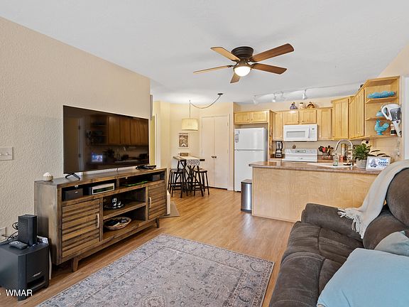 Turnkey Long Term or Short Term Rental Property: This 2 bedroom/2 bathroom condo in Show Low has just had new carpet, new refrigerator and new microwave installed. This is a split floor plan too. Electric fireplace in the living room. This is a lower unit too so very few stairs to unit. Extra private storage closet on the front deck. BONUS: This unit has its own stackable washer and dryer in the guest bathroom so no having to take your laundry to the clubhouse laundry facility. Long term and short term rentals allowed. Views of the trees too, not other condo buildings or parking lot.