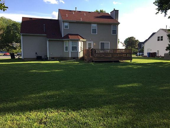 Move-in Ready and Available July 25, 2025. Quiet neighborhood. Grassfield High School district. Convenient to shopping & I-64, Military Bases:15 minutes to downtown Norfolk, 25 minutes to JEB Little Creek, 30 minutes to NAVSTA Norfolk. Main floor includes: Open floor plan, Eat-in kitchen (new stainless steel appliances), den with gas log fireplace, formal living room and dining room, powder room, laundry area (with washer/dryer). Hardwood floors on main level in dining room, kitchen w/granite countertops and new cabinets, half bath and foyer. Upstairs includes: master bedroom with 3 additional bedrooms, two full baths. 0.33 acres on a great corner lot, spacious deck, 2 car garage with parking for additional 4 cars in driveway. Perfect for families! Available July 25, 2025 - Tenant pays utilities. No pets allowed. NO SMOKING. Available July 25, 2025- $2900 monthly. 12-month lease. Security Deposit + First month's Rent, minimum 620 credit score, and two times salary Required. Tenant pays utilities. No pets allowed. NO SMOKING. Credit Check and Application required per each person over 18.